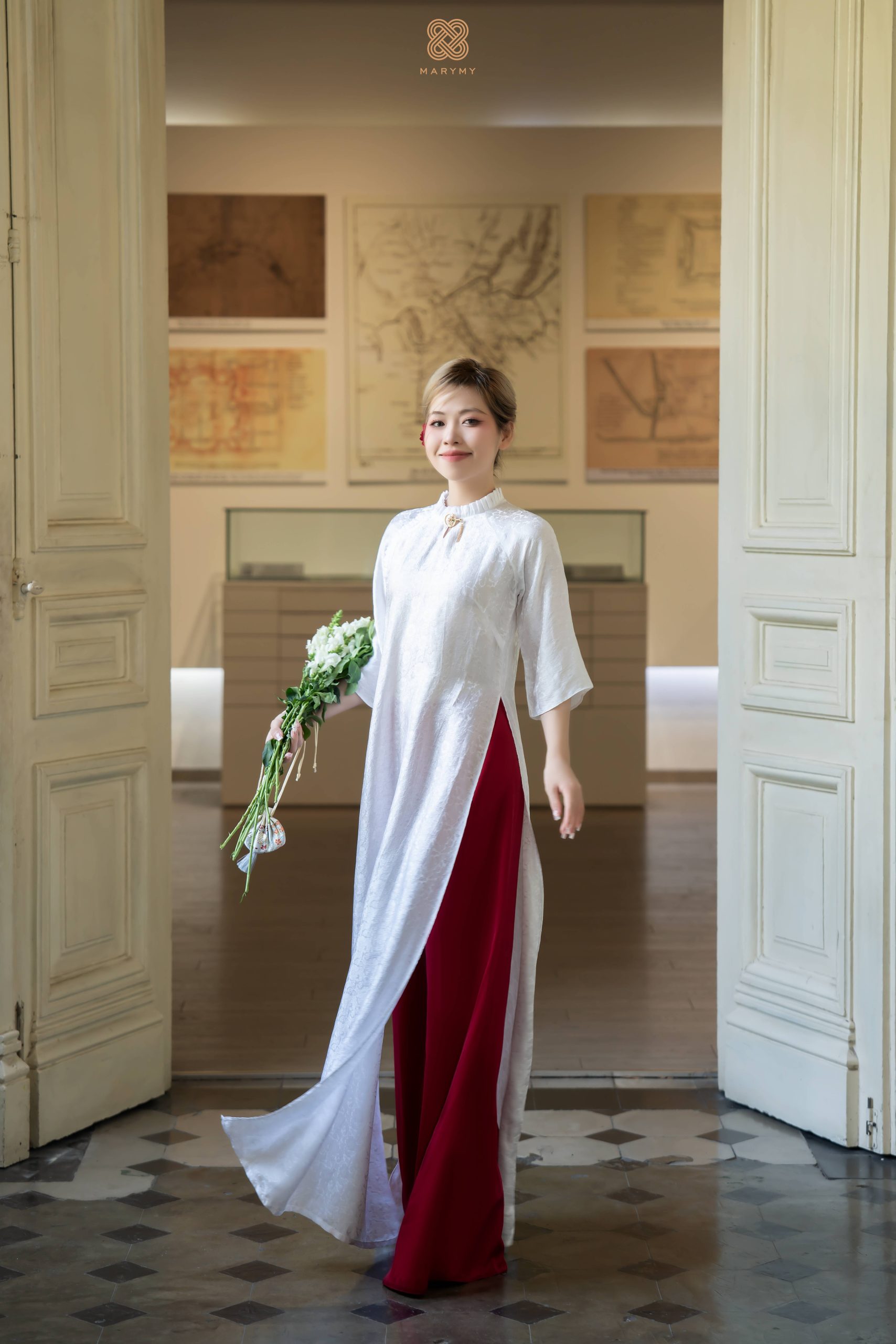 Áo Dài Cách Tân Bạch Phụng MARYMY Chất Liệu Tơ Tằm Nha Sá Thiết Kế Thanh Lịch Cao Cấp
