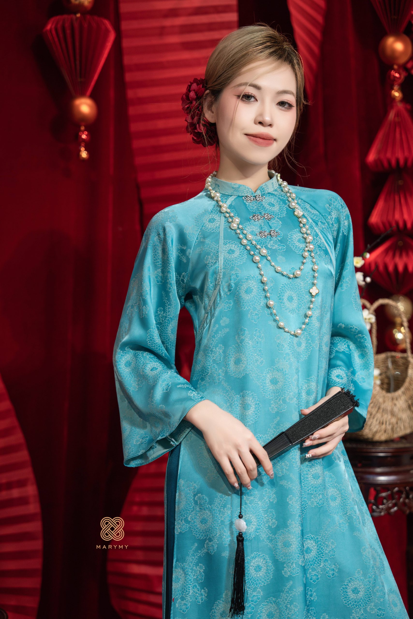 Áo Dài Thiết Kế Cung Đình Lam MARYMY Chất Liệu Cao Cấp Thanh Lịch Quý Phái