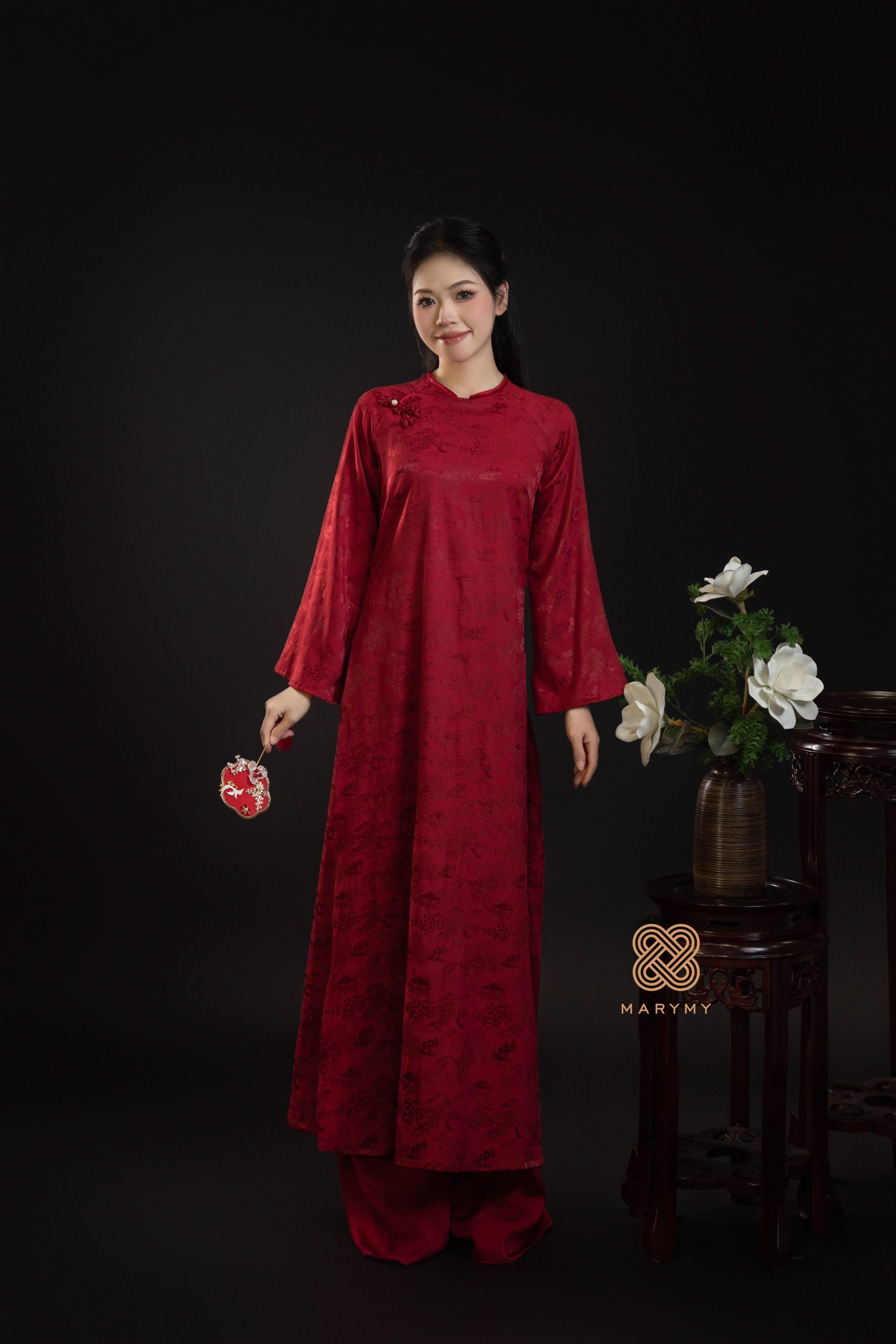 Áo Dài Cách Tân Châu Sa MARYMY Chất Liệu Gấm Lụa Cao Cấp Họa Tiết Thêu Nổi Đính Charm Thiết Kế Thanh Lịch