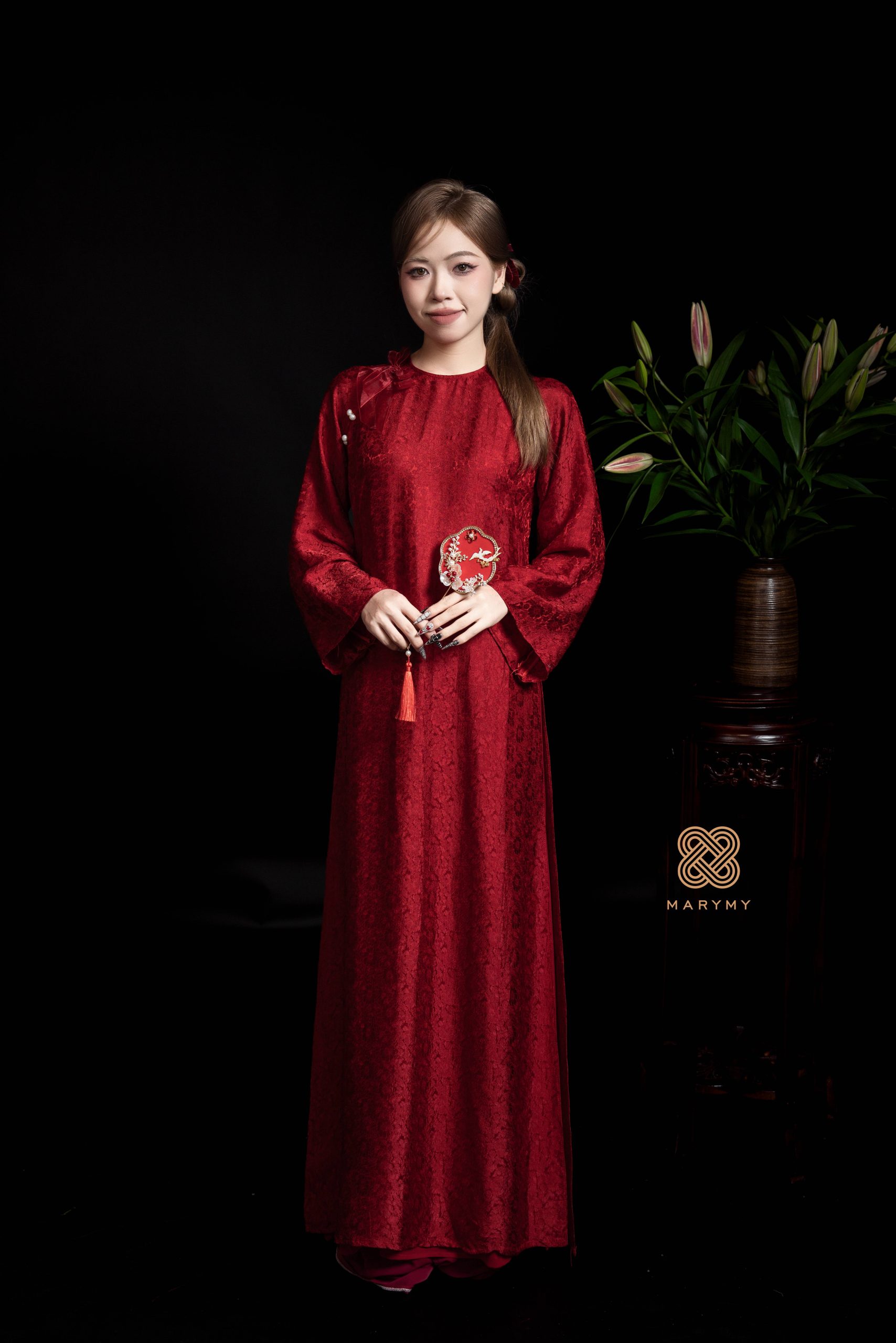 Áo Dài Cách Tân Xuân Hỷ MARYMY Chất Liệu Tơ Tằm Nền Hoa Nhỏ Cách Điệu
