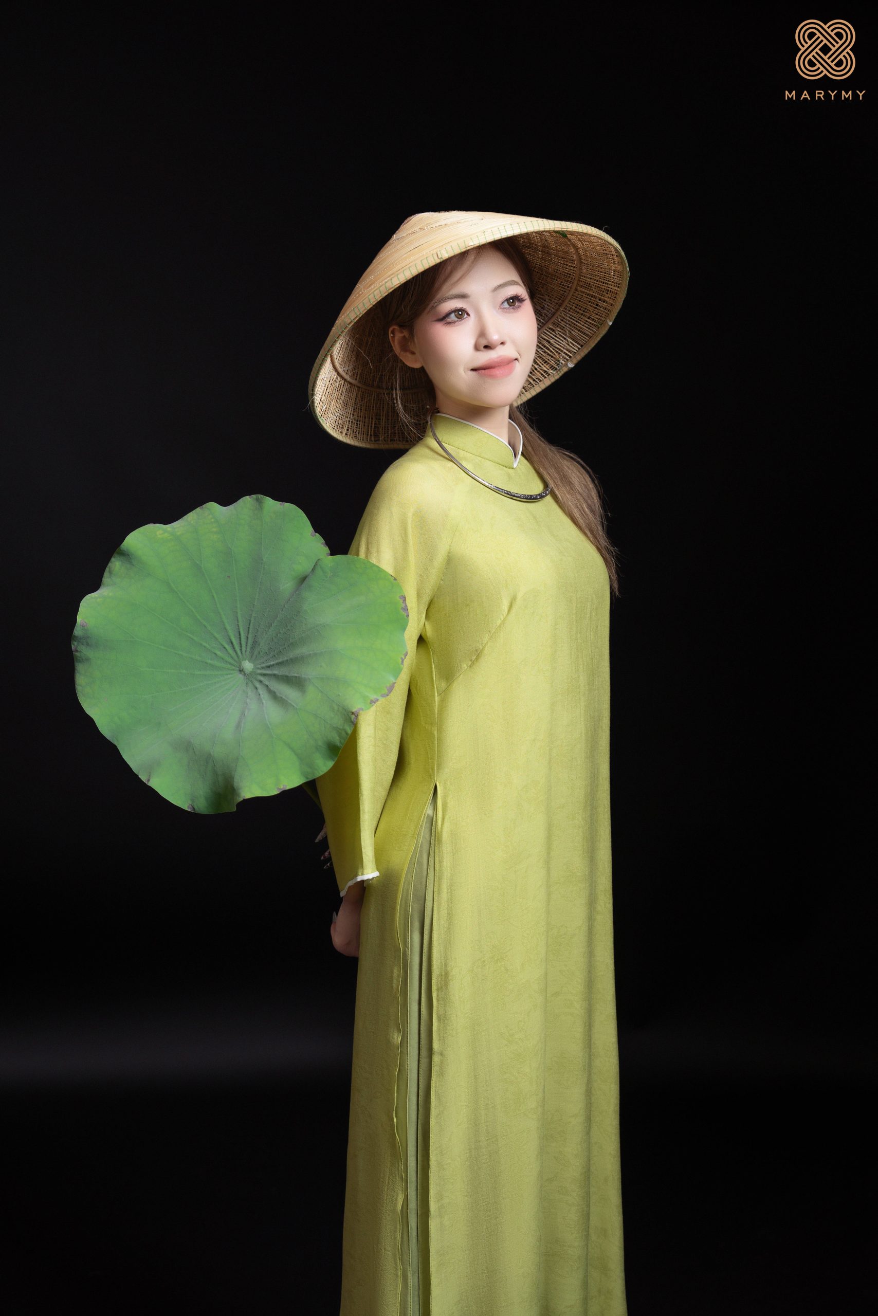 Áo Dài Cách Tân Yên Hạ MARYMY Màu Xanh Cốm Chất Liệu Tơ Dệt Họa Tiết Hoa Văn Dệt Nổi