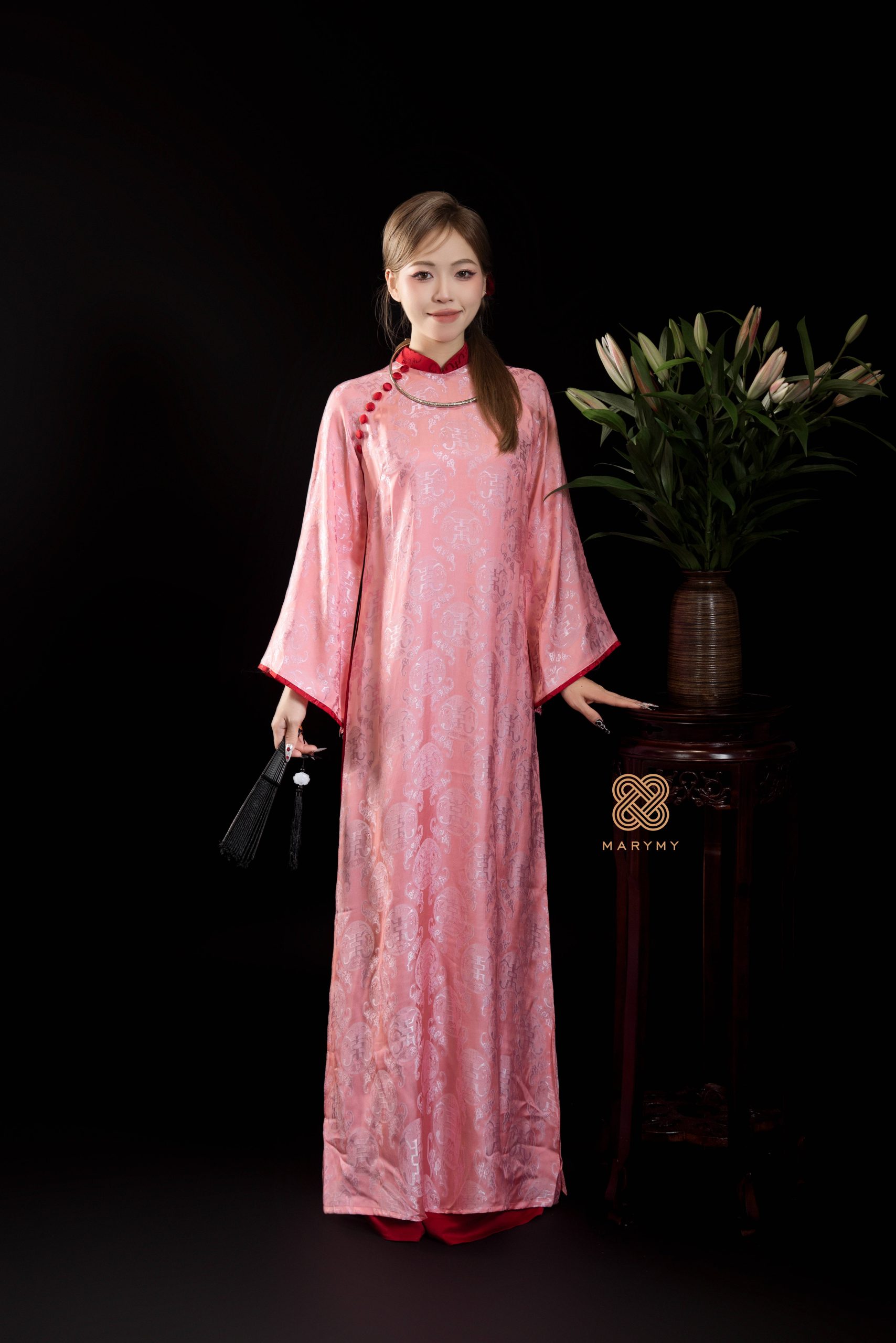 Áo Dài Cách Tân Ngọc Sa MARYMY Chất Liệu Gấm Lụa Tổng Hợp Hàng Cúc Và Bo Viền