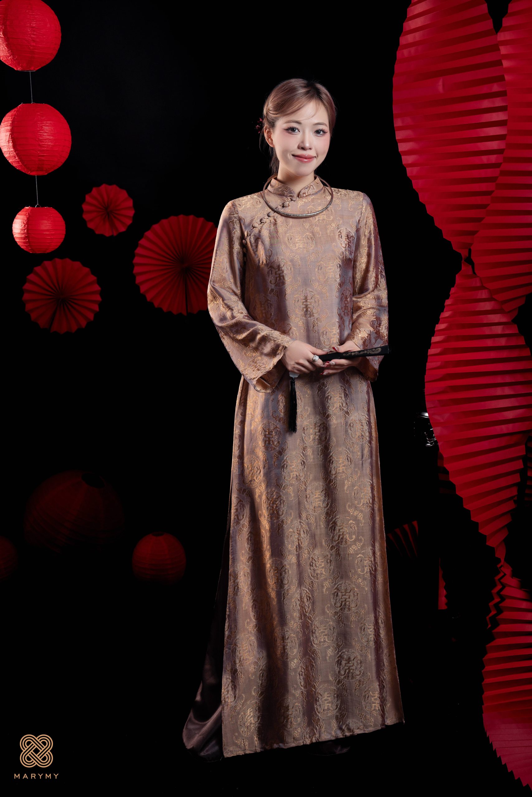 Áo Dài Cách Tân Tơ Tằm Nâu MARYMY Thiết Kế Thanh Lịch Sang Trọng