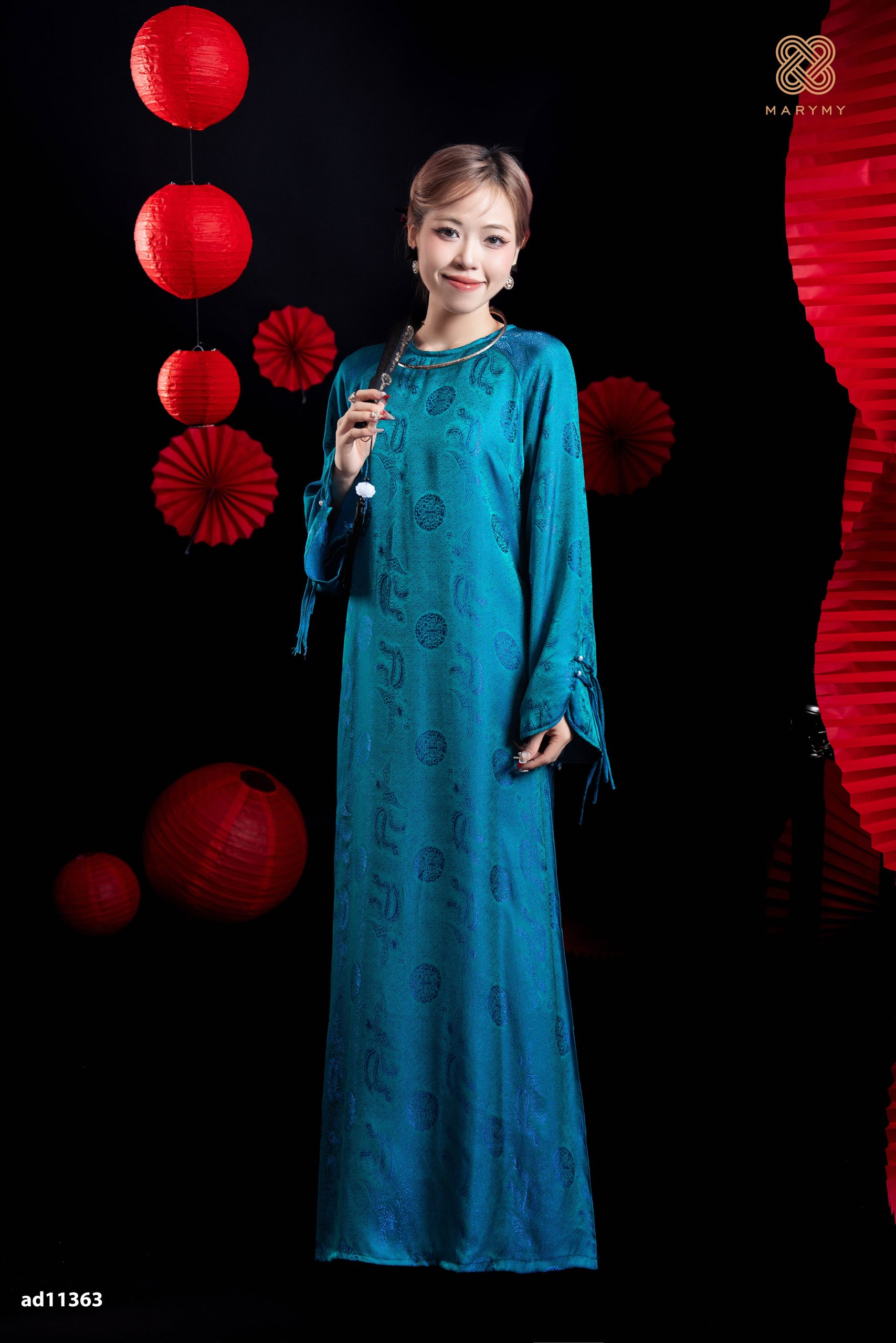 Áo Dài Gấm Phượng Hoàng MARYMY Màu Xanh Thiết Kế Cách Tân Thanh Lịch
