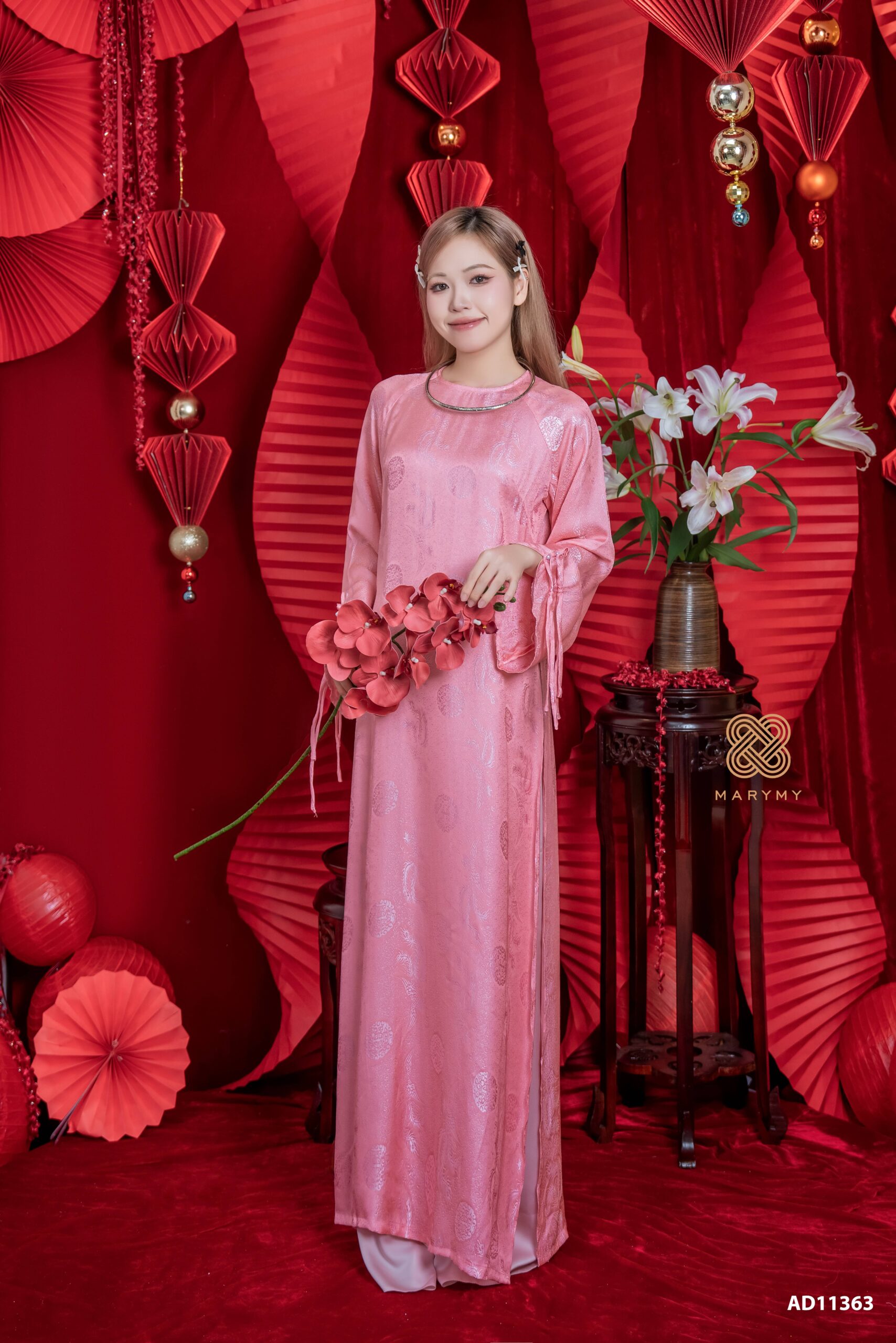 Áo Dài Gấm Phượng Hoàng MARYMY Màu Hồng Thiết Kế Cách Tân Thanh Lịch