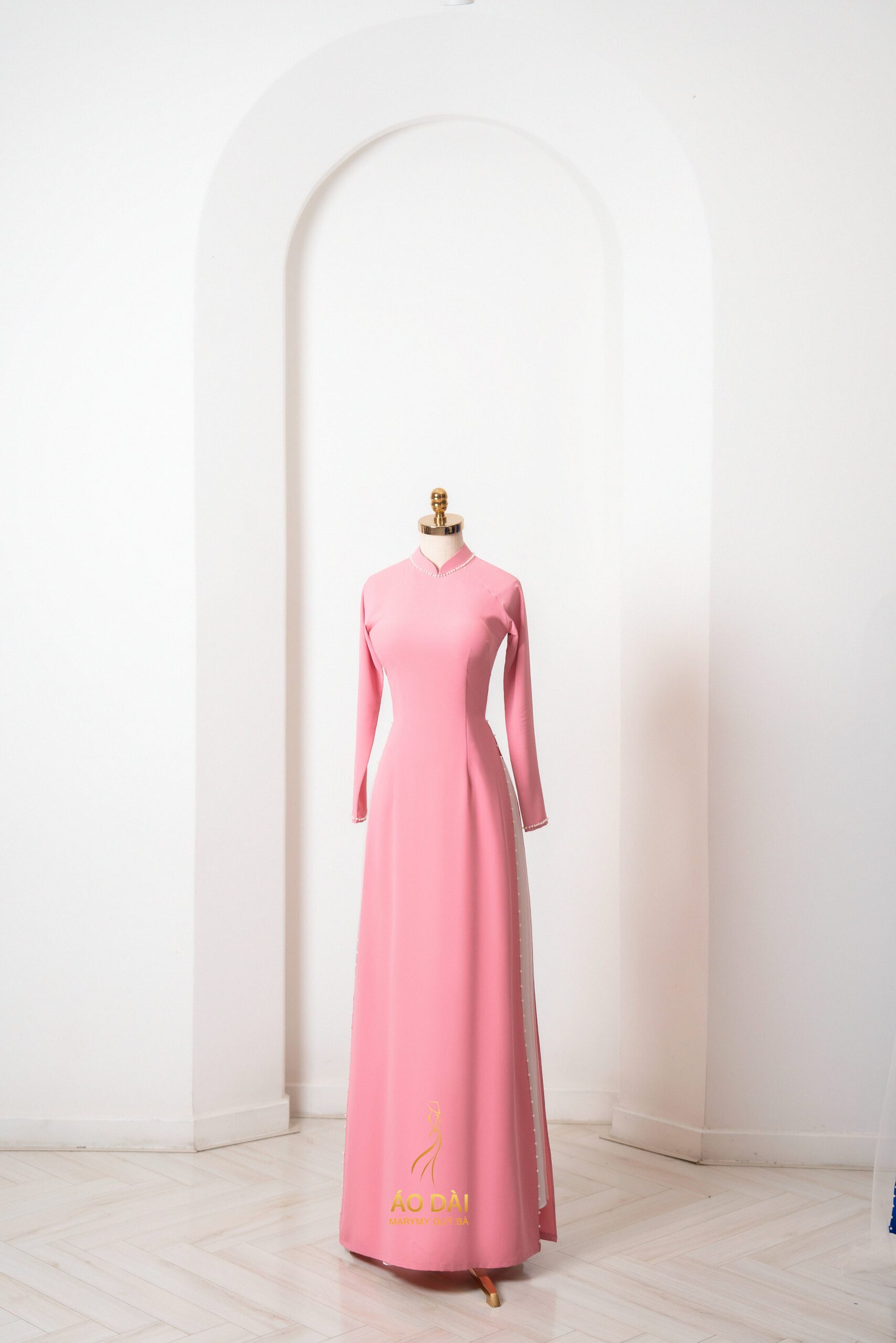 Áo Dài MARYMY Chất Liệu Lụa Mỹ Màu Hồng Phấn